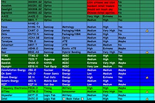 Nvidia, TSMC, Broadcom, Qualcomm, Micron, Cadence, Intel, Synopsys, Teradyne, SKyworks, Qorvo