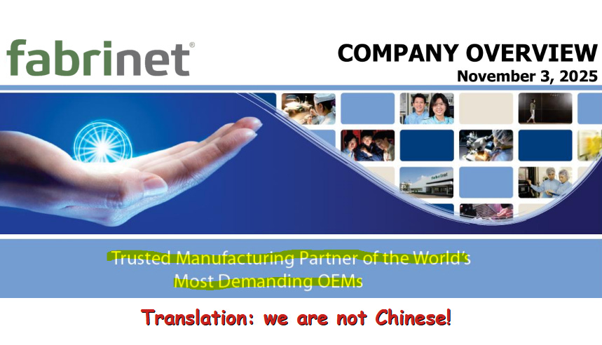 Fabrinet is THE ONLY WESTERN OPTICAL MANUFACTURING FIRM that can credibly match the Chinese in competence/quality/yield.