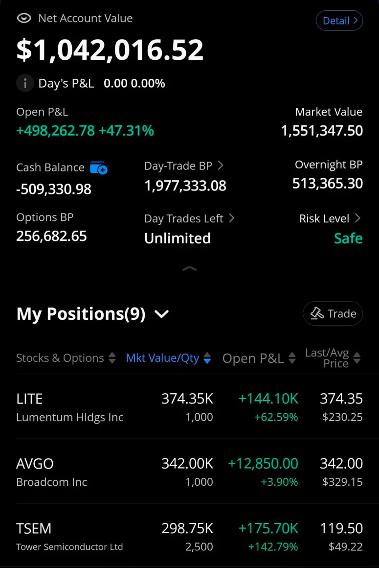 Funny story. Was checking the trading account and saw that largest position was Broadcom. Ok.