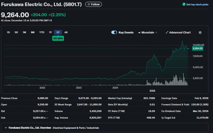 Finally, we have Furakawa Electric ( $5801.T ), a rather diversified firm.