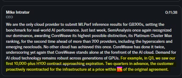 This datapoint that a 10K block of H100’s that were under (presumably) 3-year contract got renewed at a 5% discount to original price is useless.
