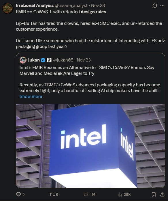 Global Foundries ( GFS 0.00%↑ ) sucks across all segments. If I worked at a hedge fund, I would 100% seriously pitch a MASSIVE short GFS, long TSEM.