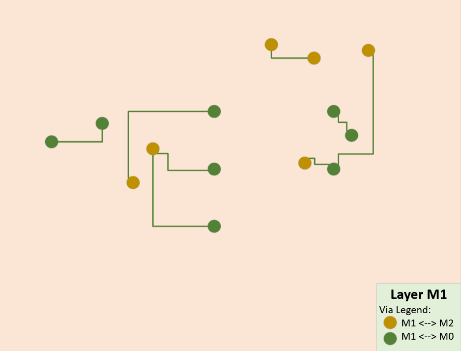 There are three layers, one base (M0) and two wire (M1, M2) layers.