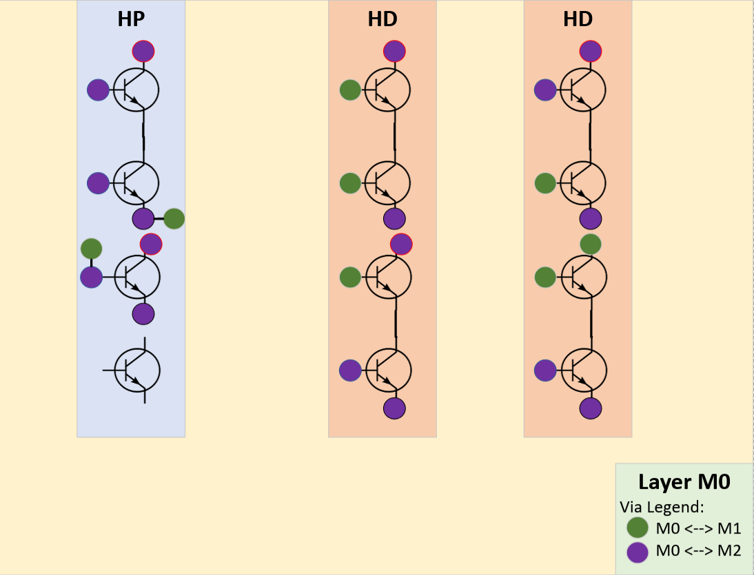 Transistors are provided by the PDK in various library groups at different speed/power/performance characteristics.