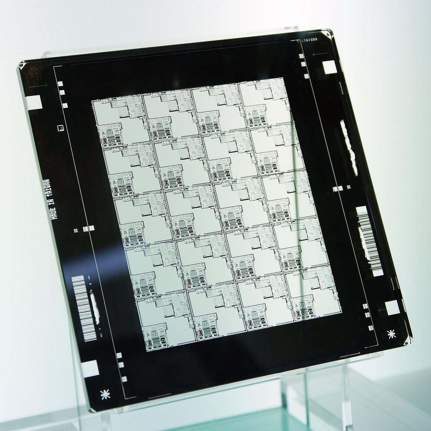 Each layer of the chip needs a lithography mask, sometimes two or four masks per layer (multi-patterning). Light is shined through the mask to mass-print the design upon the wafer. Remember that the transistors are on the bottom/first layer and wires are on subsequent layers. This will be important.