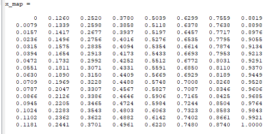 The difference in value between one coefficient and the neighboring one is exactly the same. Always +/- 0.0079.
