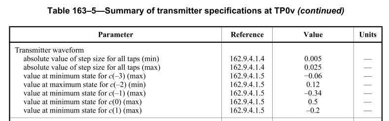 If Rx requests (0,0,-0.1,0.9,0) but gets (0,-0.025,-0.05,0.9,-0.025) instead, link training will not work and interoperability issues show up.