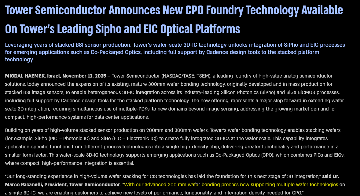 If you look at my prior writing, I have been adamant that Tower would get 0% of CPO and 100% of CPO goes to TSMC because COUPE is amazing.
