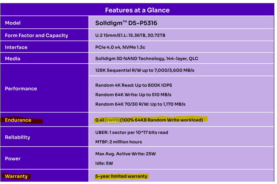 Anyway, the 5-year warranty is only for 0.41 drive-writes per day (DWPD).