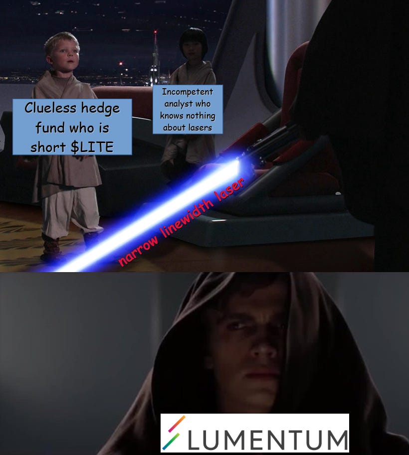 I encourage all institutional investors who read this to short LITE 0.00%ā to make the incoming squeeze more entertaining.