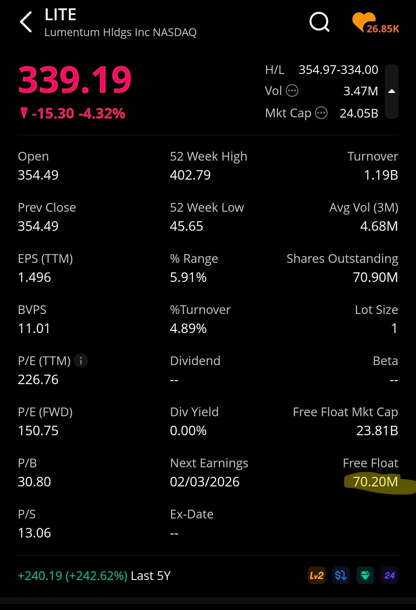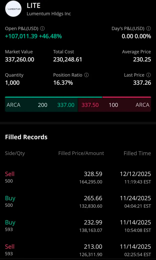 I also own a lot of Lumentum stock. It is #2 position (behind Intel) in the trading account.