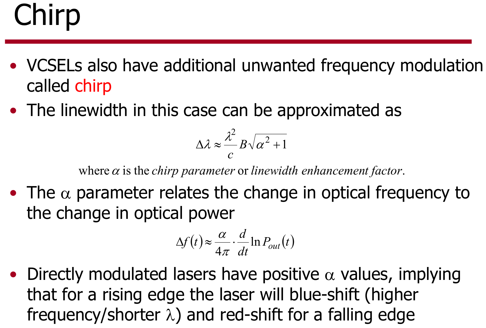 Because VCSEL systems are directly modulated (power supply is the SerDes itself), they suffer from something the optical people call āchirpā.