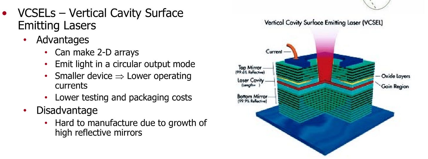 In short, VCSEL has a lot of problems but one key benefit.