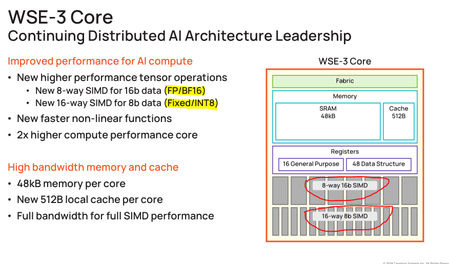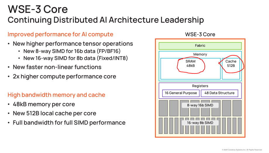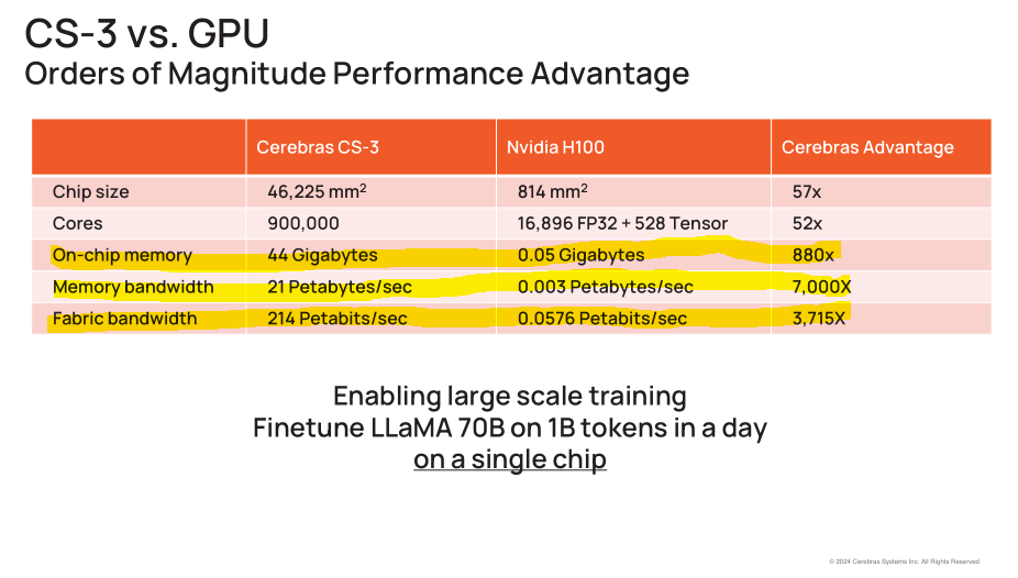 For example, Cerebras loves to make bullshit claims against Nvidia, neglecting to mention the nuance that the individual cores are very small and thus the compiler needs to perfectly map neural network graphs onto a giant mesh before runtime.