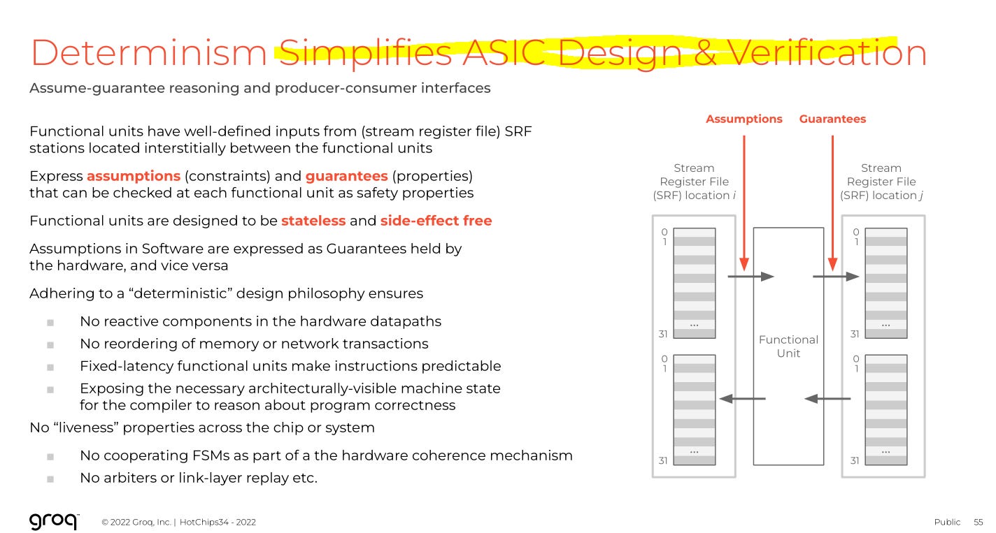Engineers who have used Groq Cloud understand the chip is 144-wide VLIW that requires cycle-granularity static scheduling from the compiler.
