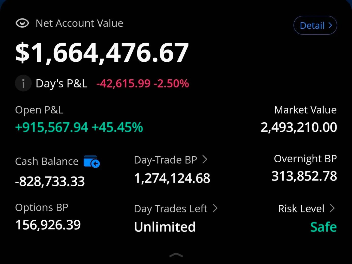 At the time of writing I have the following state in my trading account.