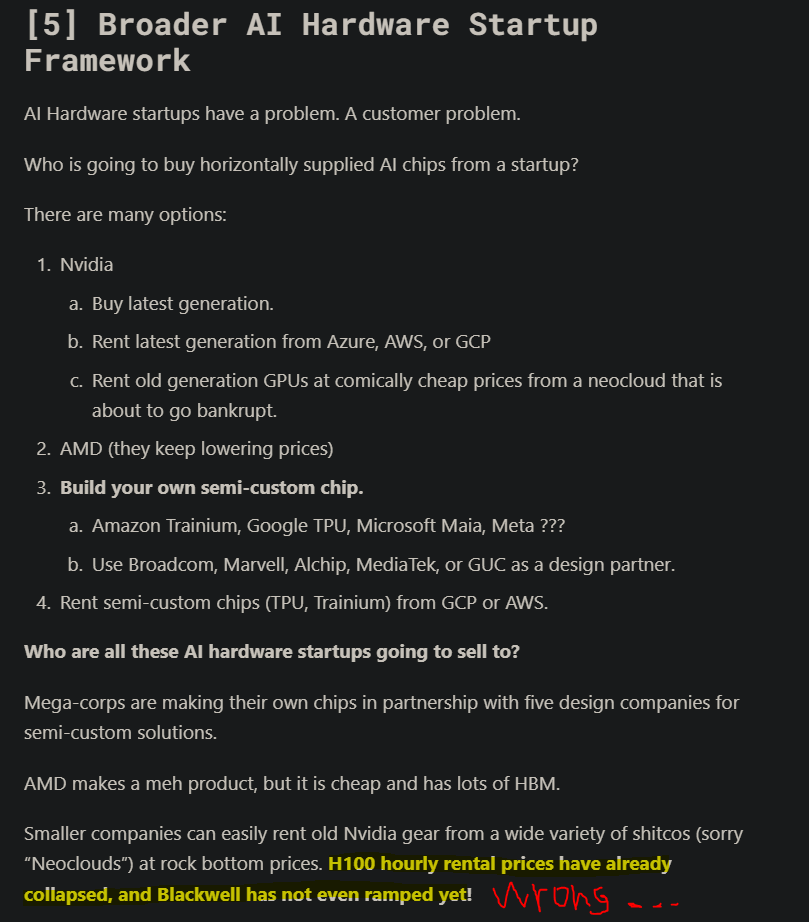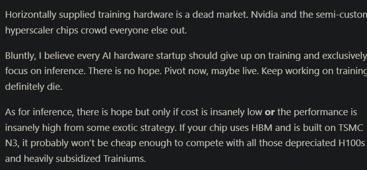 Continuing this introduction, let me bring up an old post that was half about Tenstorrent, half about why I thought (at the time) vast majority of AI hardware startups would fucking die.