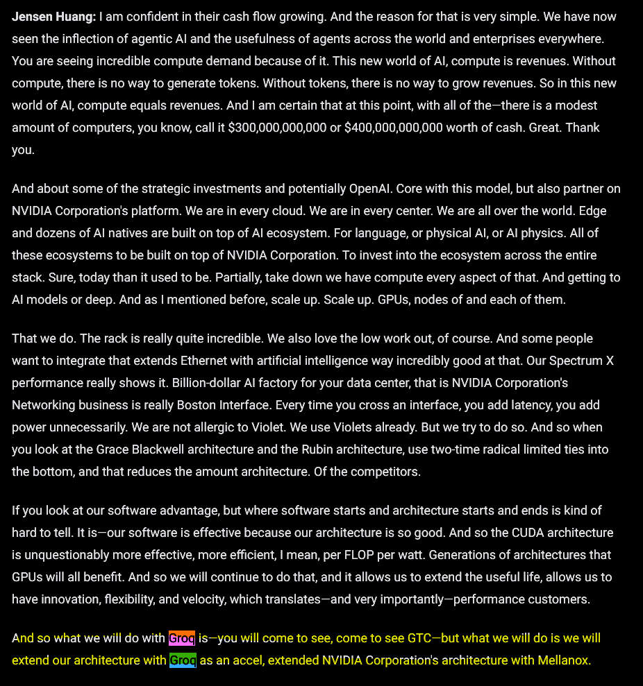 It took only four business days to get Groq talent in the door and working from the time this deal was publicly leaked/announced. Clearly, there is an urgency at Nvidia, and there is even more evidence on this front…