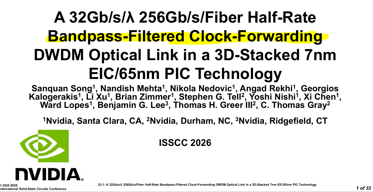 Nvidia just presented their optical clock-forwarded die-to-die link at ISSCC.
