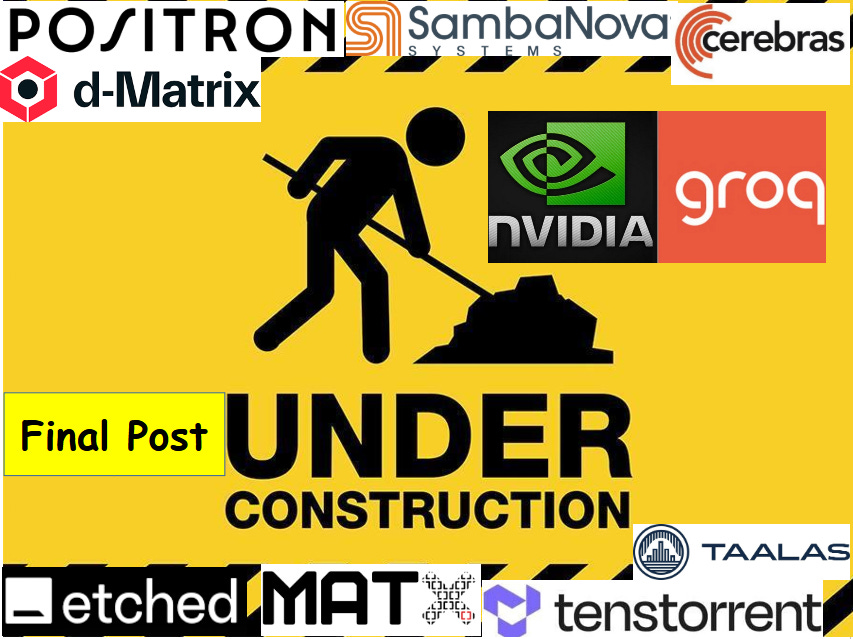 I am presently in negotiations with MatX, Etched, Taalas, and Positron for access to technical information and permission to publish content relevant to their sections.